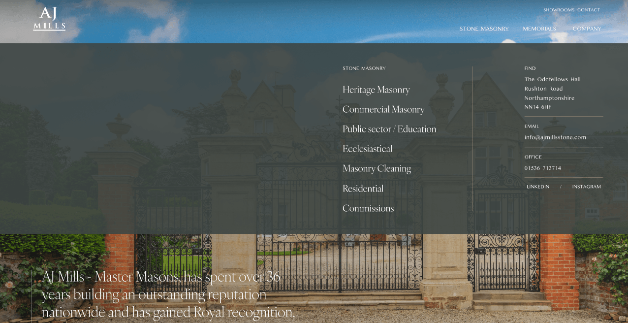 A J Mills - Master Masons, has spent over 36 years building an outstanding reputation nationwide and has gained Royal recognition, offering professional advice and services to all aspects of stone masonry.