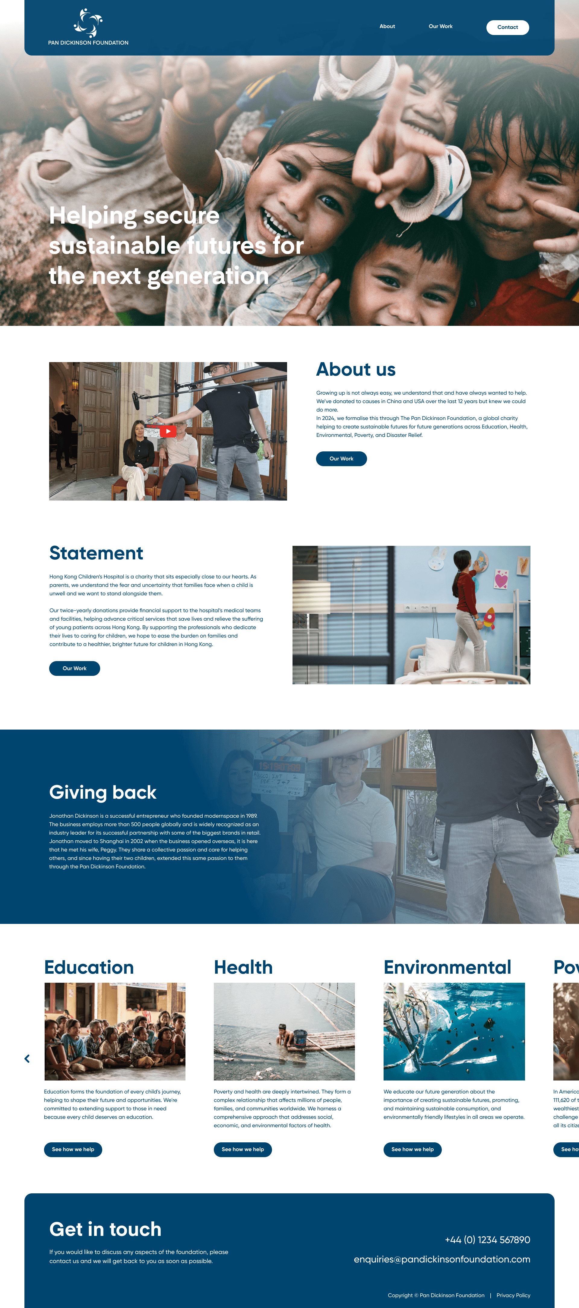 The Pan Dickinson Foundation is a global charity helping to create sustainable futures for future generations across Education, Health, Environmental, Poverty, and Disaster Relief.